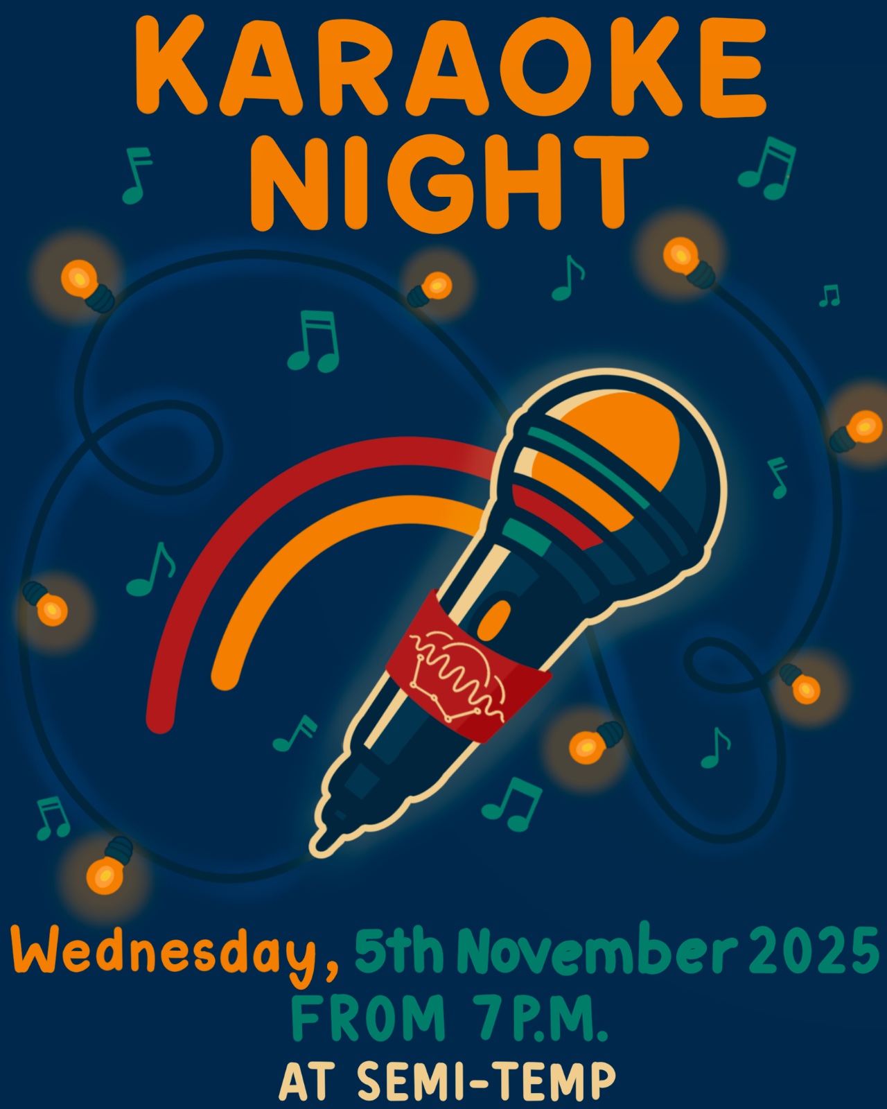 The next karaoke and dance night will take place on November 5, 2025, from 7:00 PM until midnight at SemiTemp (Schinkelstraรe 15, 52062 Aachen)! ๐ต๐ This time, there will be karaoke in two rooms but also a third room for a lovely dance evening.